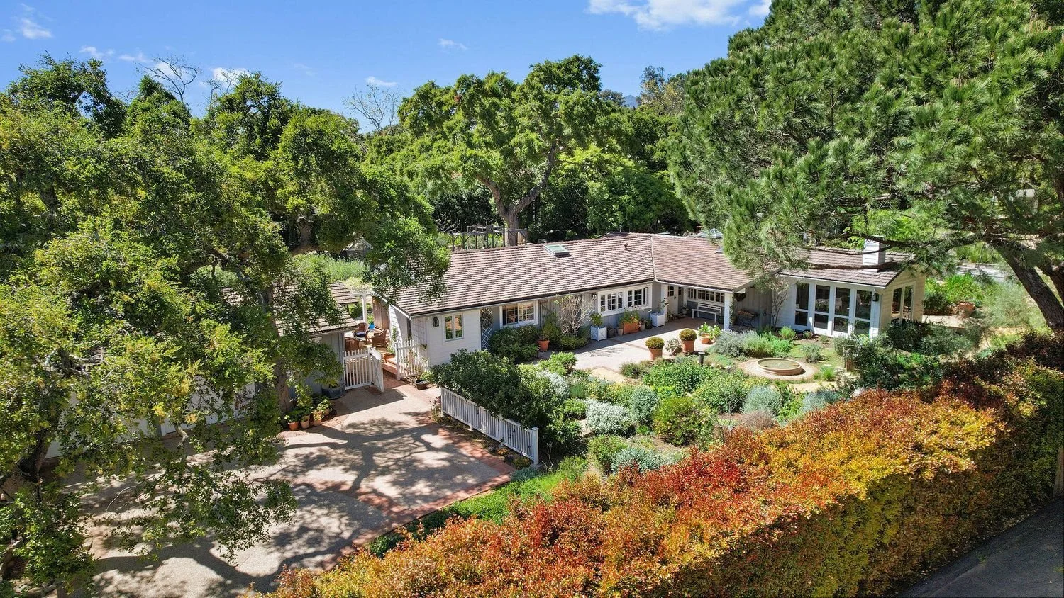 San Ysidro Ranch style 1 acre property. Enchanting gardens. Finely finished. Sensational sun room, lovely primary bedroom suite, terrific chef's kitchen. 3 bedrooms and Den. Outdoor Pizza Oven, Fireplace, and sweet Chicken Coop. Great workshop. Secluded and set up a private lane. Perfectly located between Montecito's charming Upper Village and Summerland. Welcome Home!