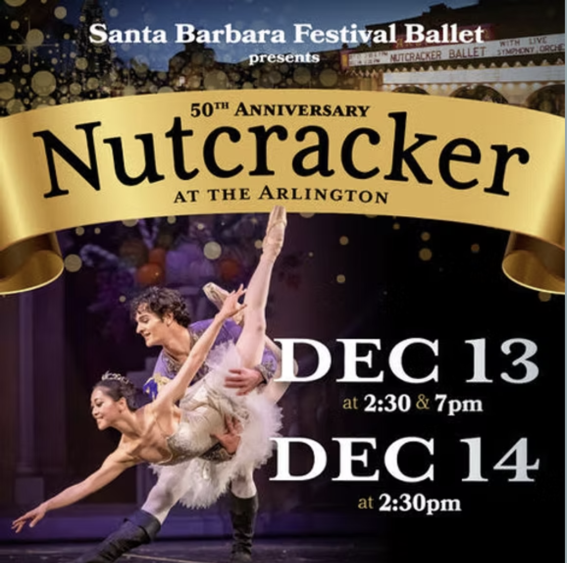 Experience the magic of the holiday season as Santa Barbara Festival Ballet celebrates the 50th anniversary of The Nutcracker at the historic Arlington Theatre. Shows will be held Dec. 13 at 2:30 pm and 7 pm and Dec. 14 at 2:30 pm.