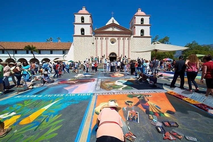 The I Madonnari Italian Street Painting Festival will celebrate its 31st anniversary from 10 a.m. to 6 p.m. on May 26, 27, and 28 at the Santa Barbara Mission. A ceremony at noon on Monday, May 28, on the Mission steps will introduce and thank the major festival sponsors and featured artist Meredith Morin as her street painting is concluded.